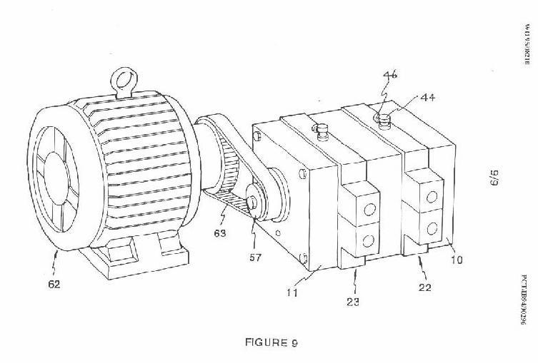 Figure 9 shows the assembled generator of figure 8 with an electric motor 62 connected thereto via drive belt 63 which engages drive wheel 57.