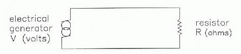 The contemporary interpretation is that a generator of V volts connected as shown to a resistor of R ohms will allow a current of V/R = I amperes to flow and cause a heating effect in the resistor of V2/R = watts to occur.